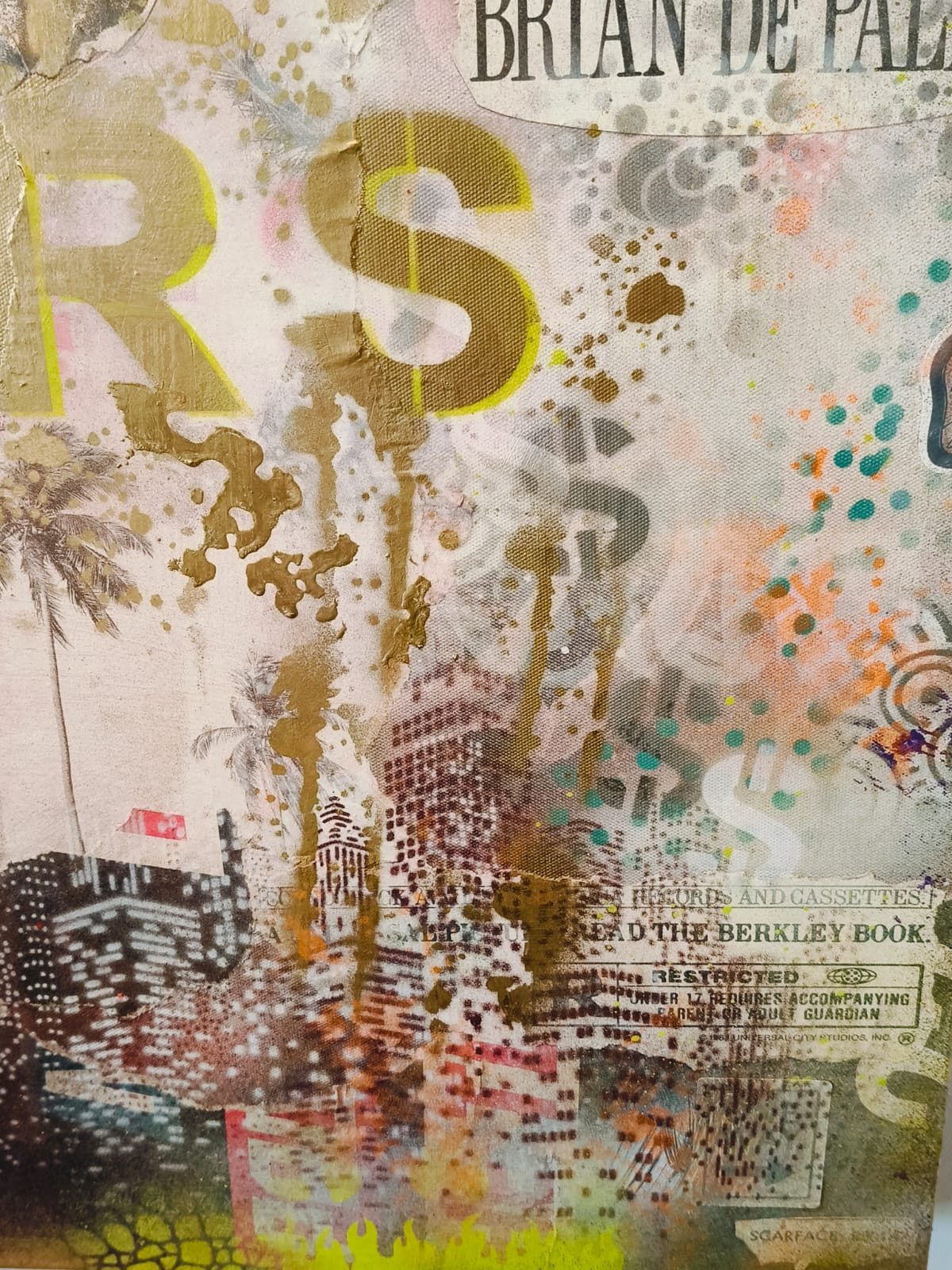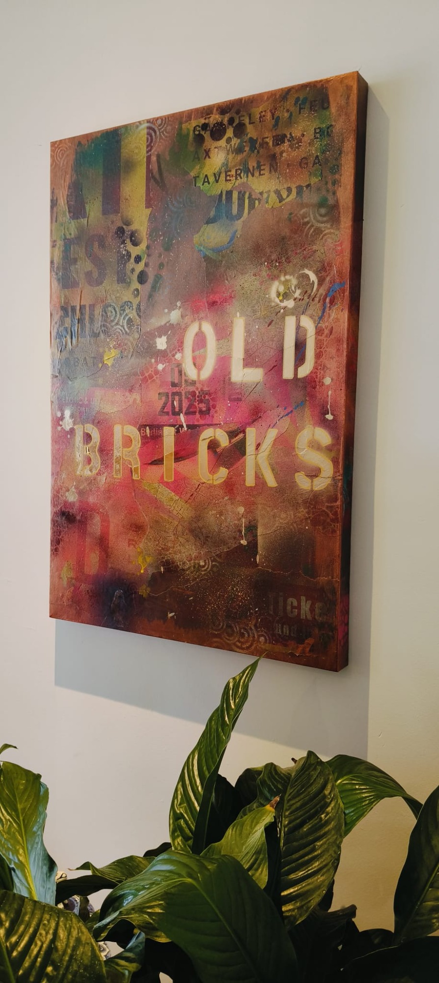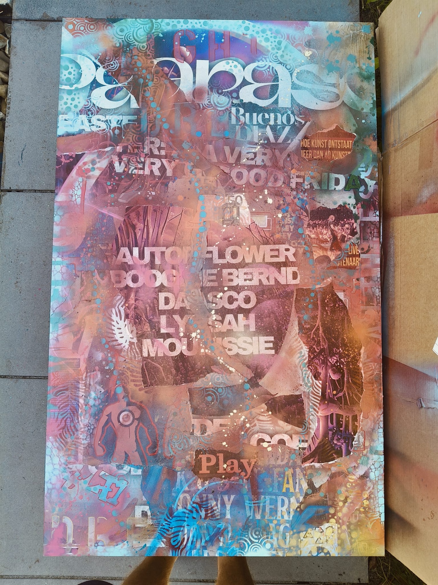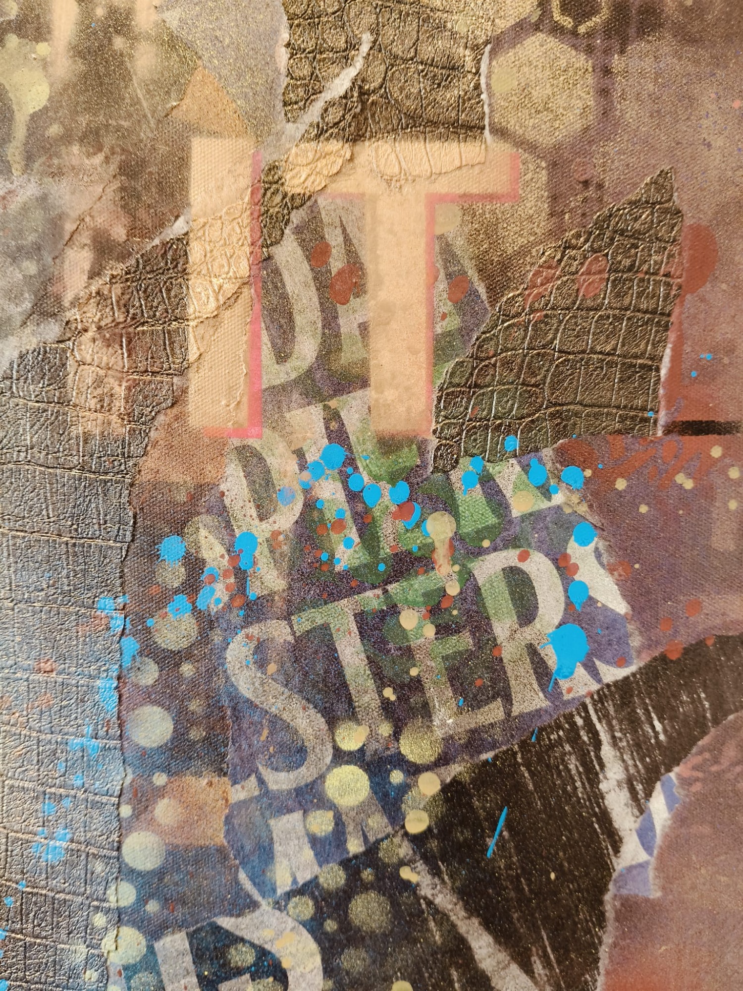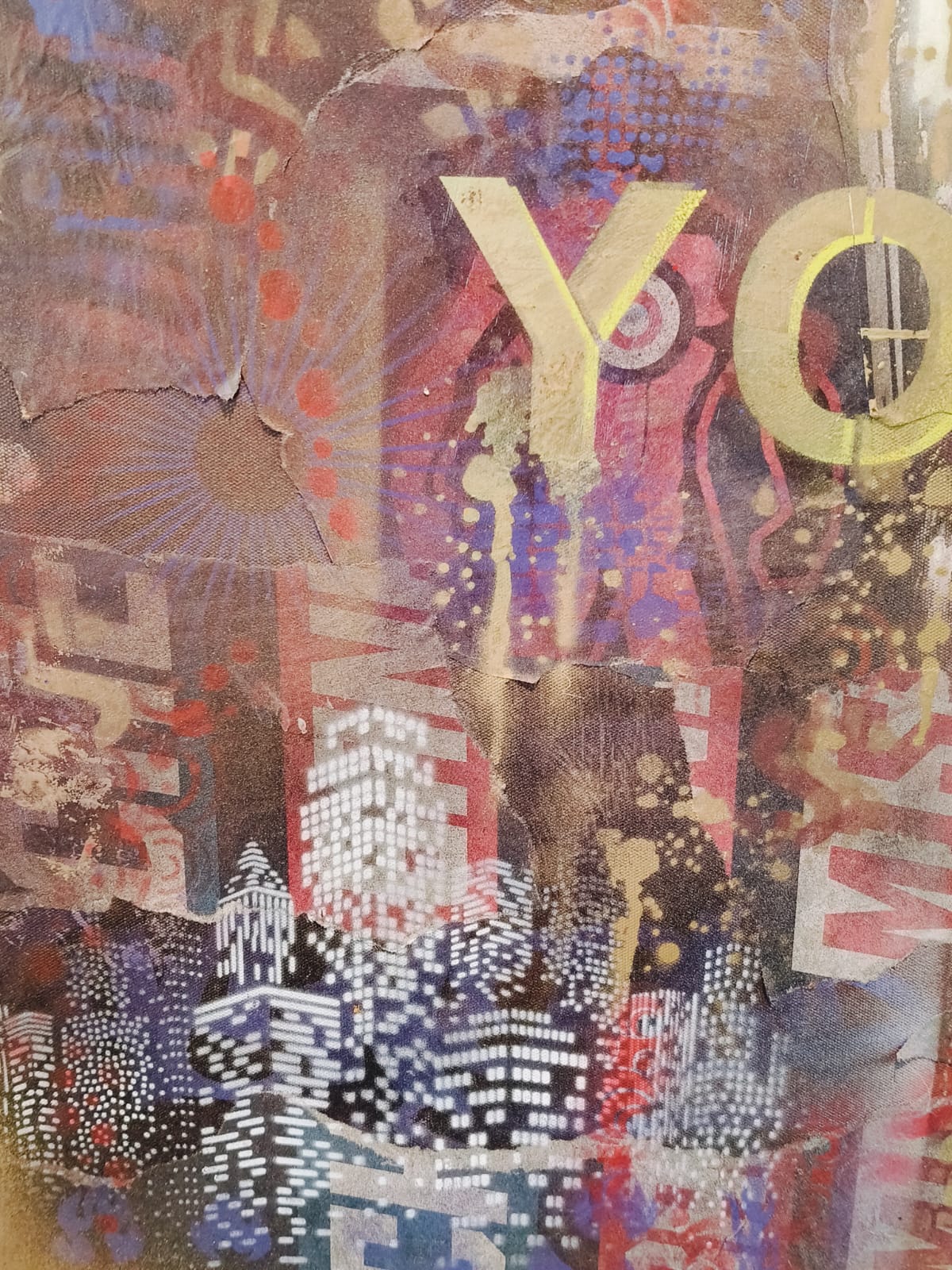 Spraypaint en verschillende straat prints op canvas