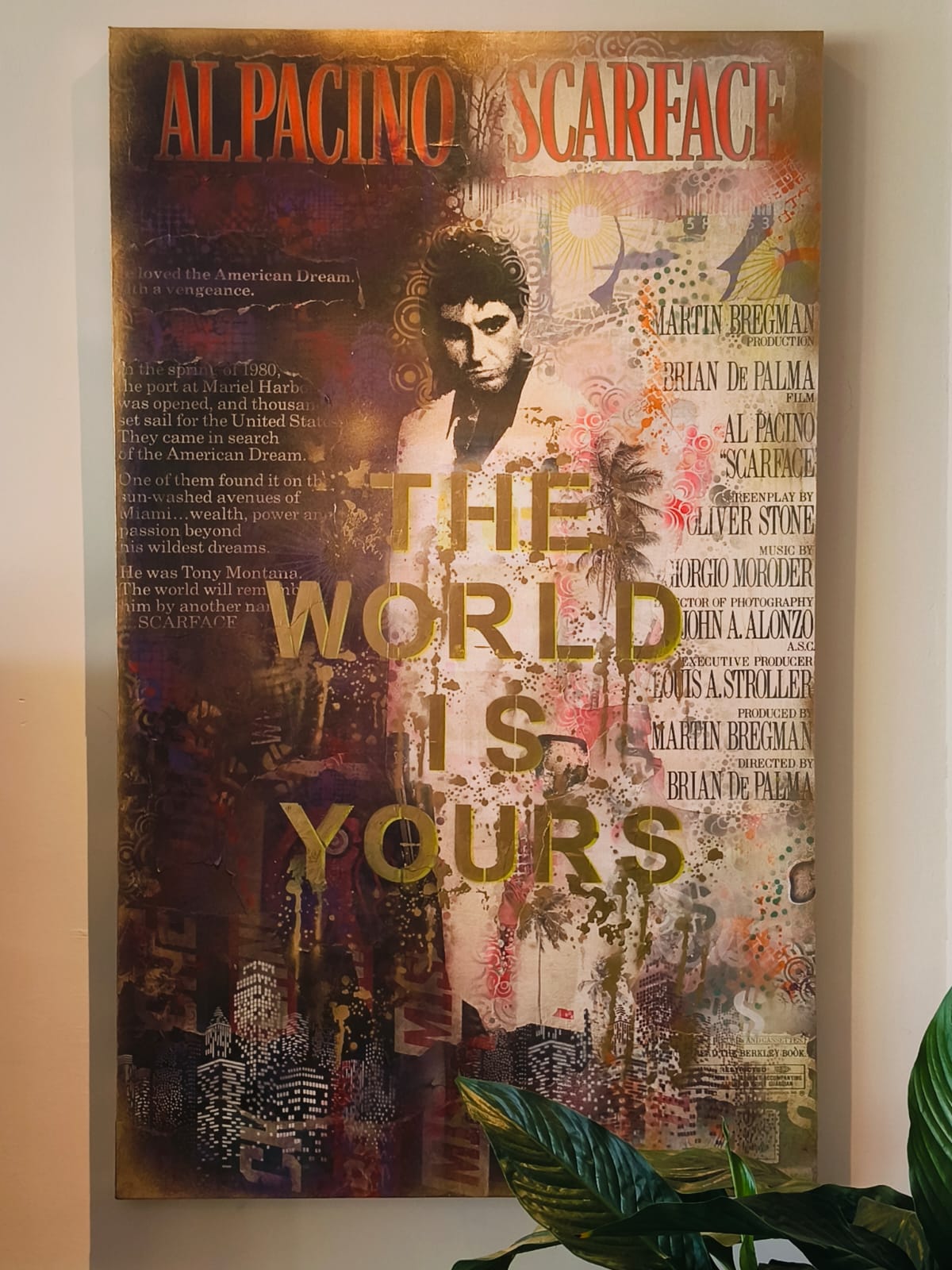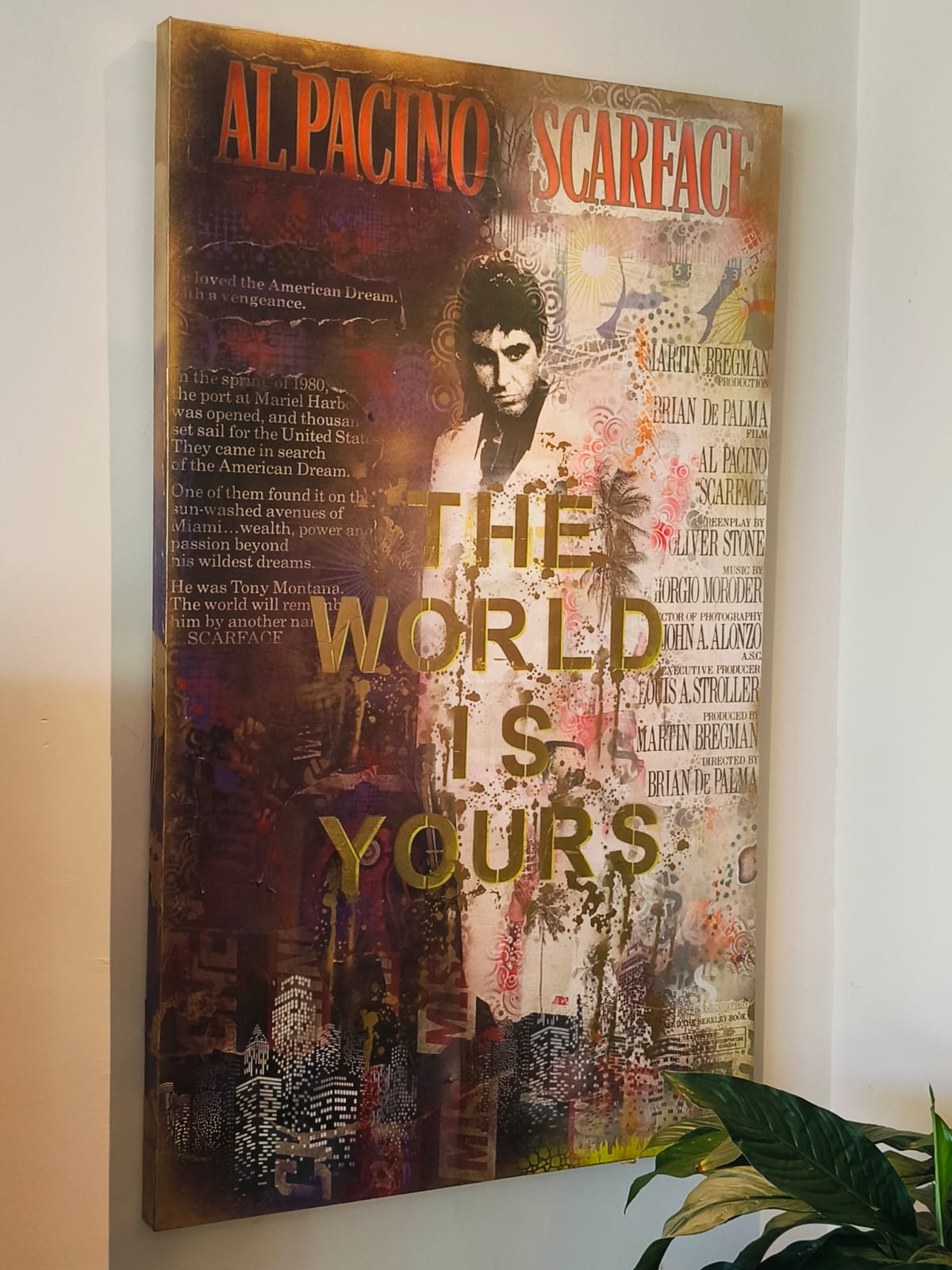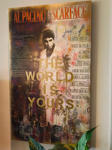 Verfraai jouw ruimte met dit opvallende canvas schilderij "Scarface", met een iconische afbeelding en de gewaagde tekst "The World is Yours". Dit kunstwerk combineert levendige kleuren en verfijnde details en legt de essentie van ambitie en macht vast. Perfect voor zowel filmliefhebbers als kunstliefhebbers, het voegt een dynamische touch toe aan elke kamer. Maak een statement en laat dit kunstwerk jouw omgeving inspireren.