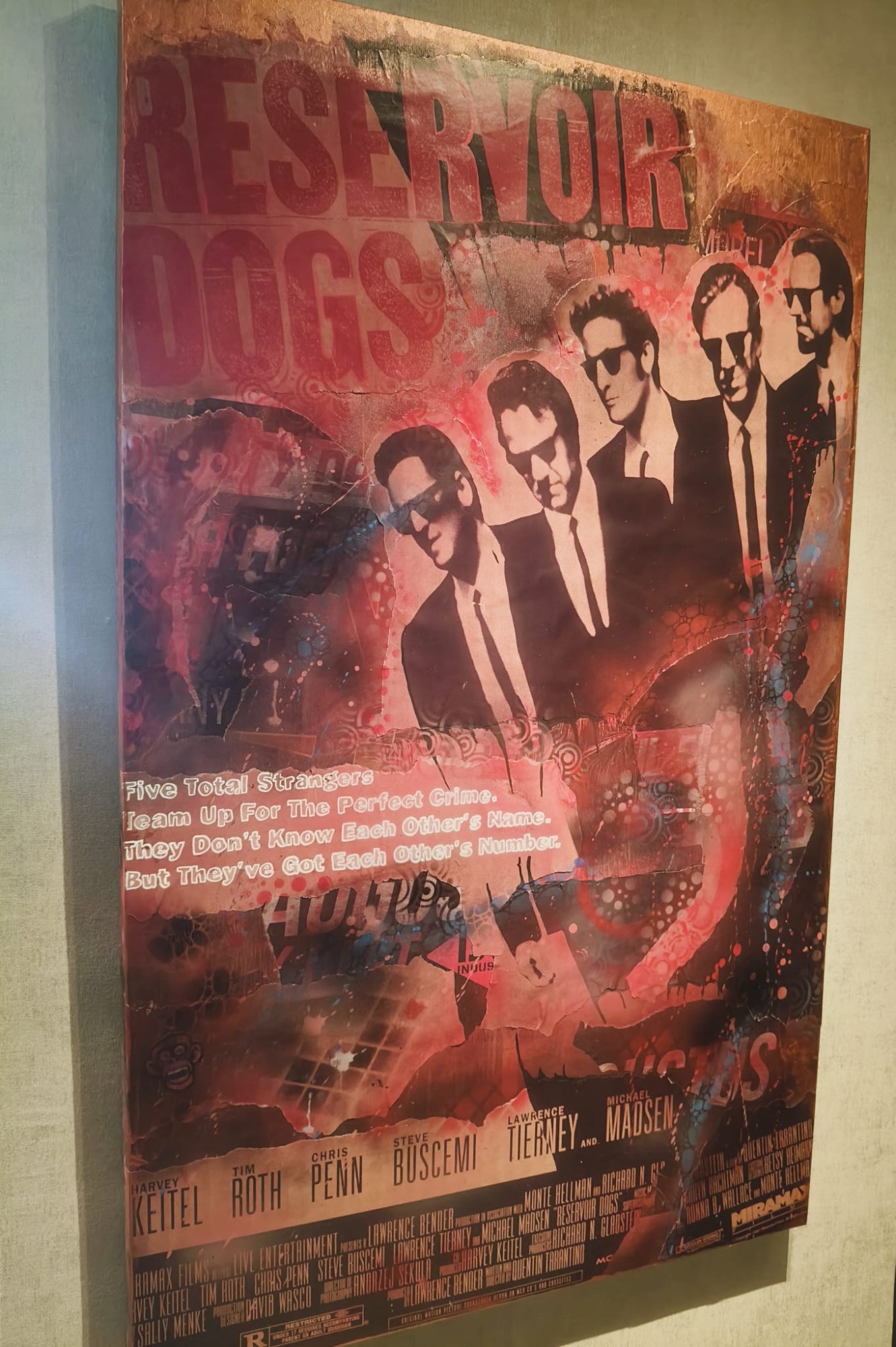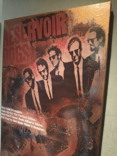 De cult film Reservoir Dogs in een Urban Style Canvas. Little Green Bag is de tune die je hoort als je dit werk bekijkt.