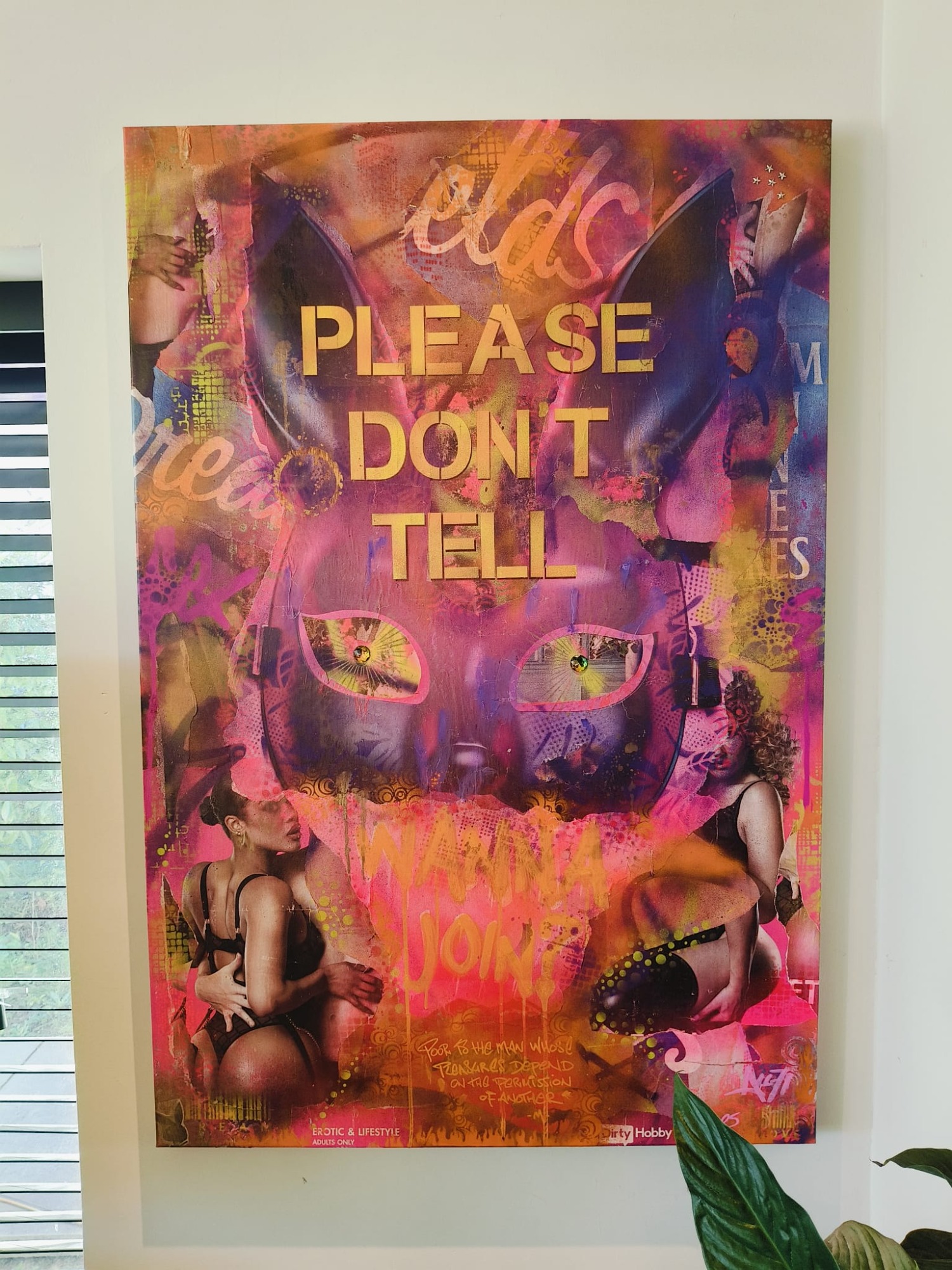 Straatposters, spuitbus, acryl stiften met een mix van verf, metal stars en sjablonen maken “Please don't Tell “ een spannend verhaal waar je geen toestemming hoeft te vragen om plezier te hebben.